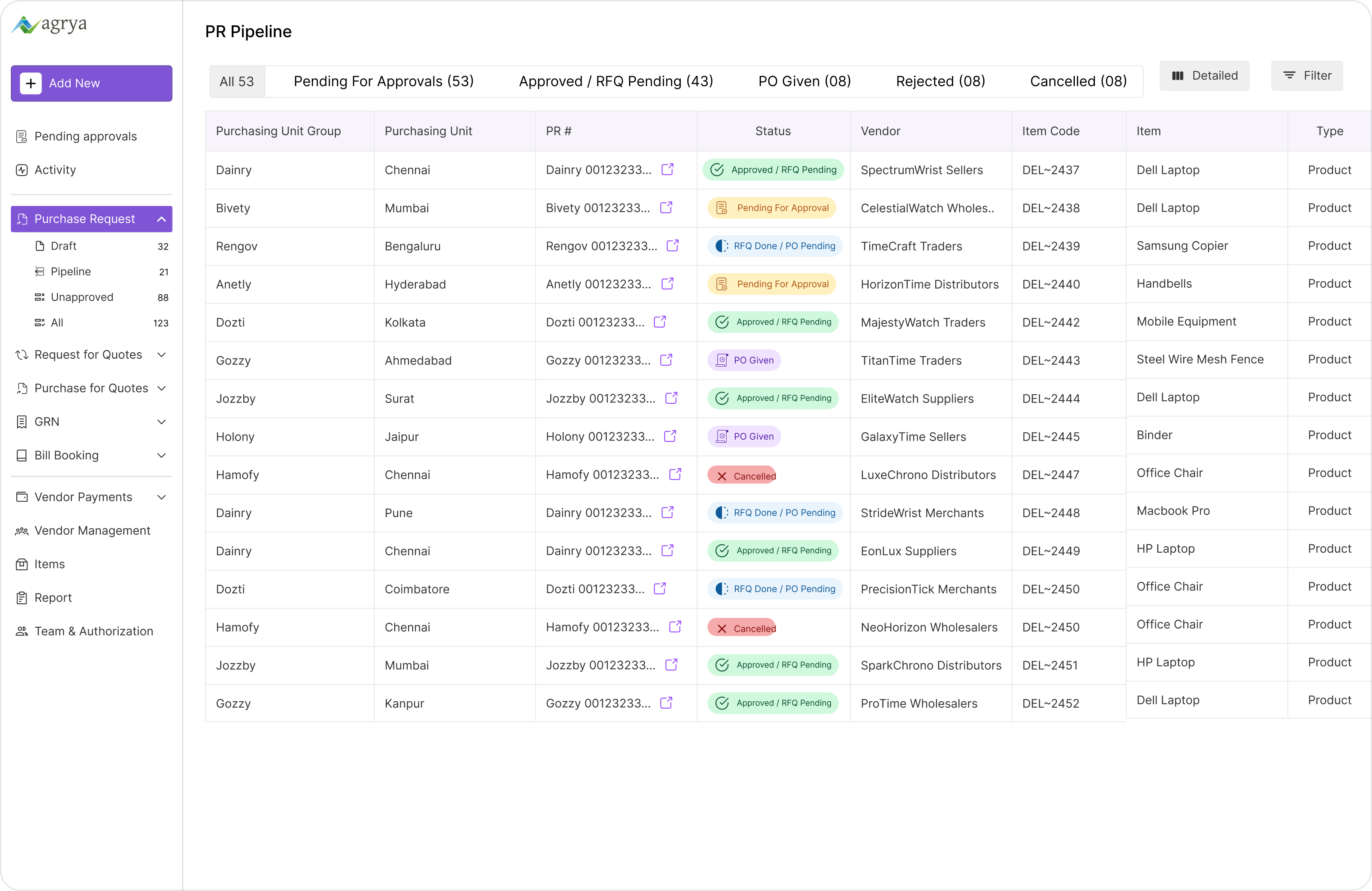 End to end procurement management solutions with custom approvals, GST integrated vendor on-boarding,
