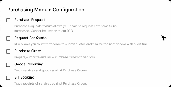 Modular end to end workflow: PR, RFQ, and PO Management, GRN Controls, Payment Request Management, Banking Integration, BOQ-integrated Invoicing